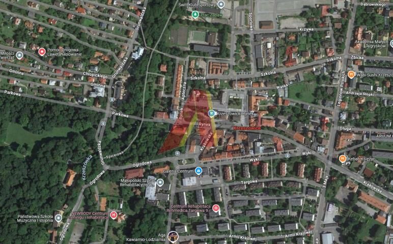 Kamienica na Rynku Krzeszowic ( do remontu z możliwością rozbudowy) na działce ponad 16ar .Obecnie 1020m2 powierzchni użytkowej z możliwością rozbudowy o 490m2 .