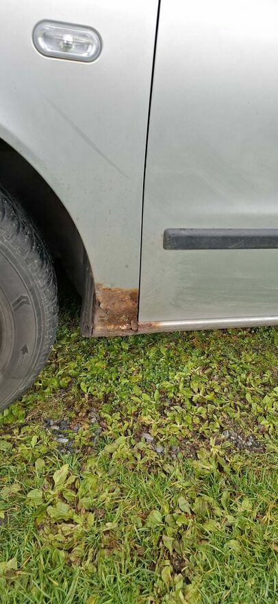 Przednie błotniki zardzewiałe jak widać na zdjęciach zarysowania na nadkolach oraz zderzaku.